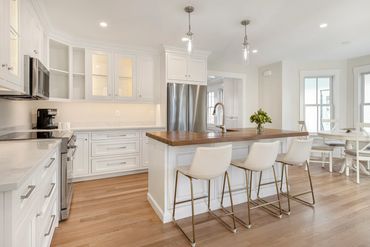 Step from the mahogany front porch into the entry area of the light and inviting living room anchored by a warm gas fireplace. The kitchen boasts a timeless butcher-block-topped island, French-door refrigerator, and Thor range, all surrounded by classic cabinetry and crown molding. An eat-in dining area features French doors leading to a side bluestone patio - perfect for grilling, entertaining, or simply relaxing in the sun with a good book. A rare and coveted first-floor bedroom with an ensuite full bathroom.